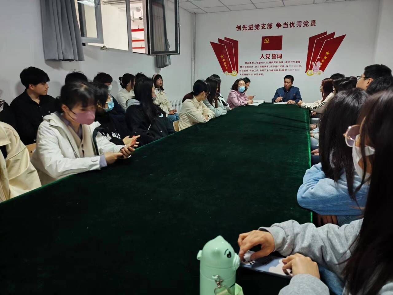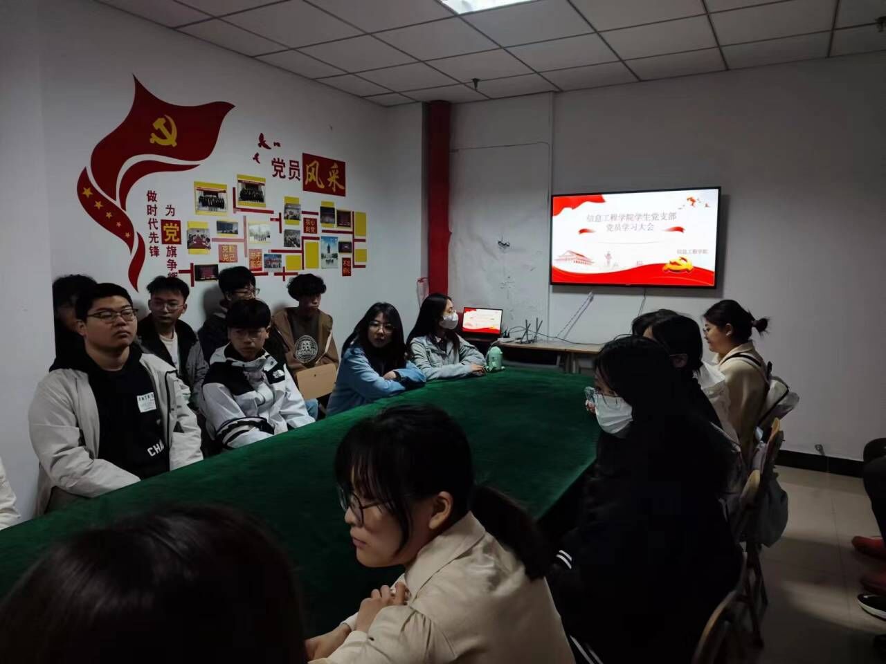 为深入学习贯彻党的二十大精神,深刻领悟“两个确立”的决定性意义,增强党支部的组织力和凝聚力,3月29日下午,威廉希尔足球官网员工党支部于三教437开展全体党员集体学习。公司党总支副书记王明印、员工党支部书记祝箐、辅导员姚惠文及全体员工党员参加本次学习。