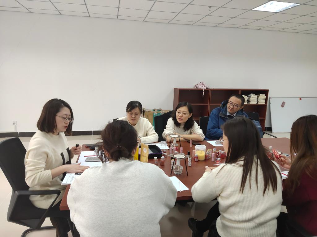 活动伊始,工会主席张爱娜老师分享了学习精油口红手作的初心,并向大家普及了精油的基础知识以及精油是如何影响人的身心,并让大家试着通过吸嗅的方式感受精油的魅力,老师们不时互动,现场气氛格外融洽。随后,张爱娜老师现场教授了制作天然有机口红的方法,她仔细认真地讲解并亲手示范,经过称量、研磨、加热、入模、出模等一步步的繁杂步骤,一支完美的口红逐渐成型。在张老师的指导下,老师们选定心仪的色号,认真仔细地制作着属于自己的口红。最后,老师们都将自己的得意之作展示出来,互相介绍自己口红的色号和所用到的精油并拍照留念。老师们受益匪浅,收获满满,在一片芬芳香气中愉快的度过本次活动。