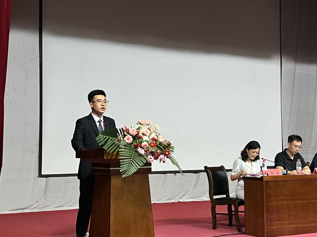 随后,新生辅导员刘禹辛老师上台发言,他勉励所有2022级同学珍惜大学时光,积极奋进,不给大学留遗憾。还希望同学们开阔自己的视野,学好专业知识的同时珍惜时间、做好规划、追逐梦想,做一个有志向的老员工。