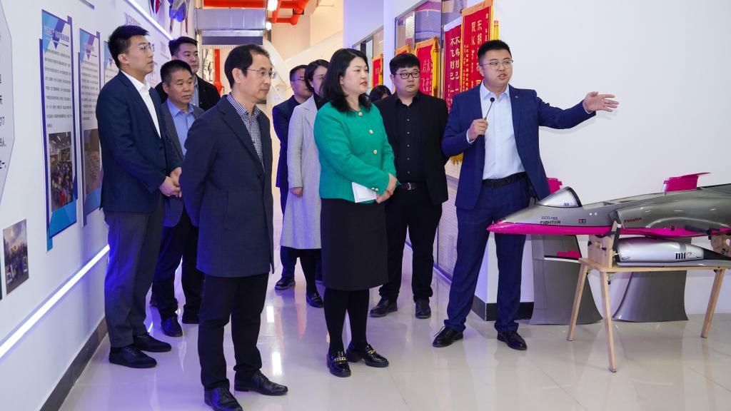 首先,来访领导们一同参观了无人机创新实验室。公司2015级优秀员工、山东宇航航空科技有限公司总经理宋英豪介绍了实验室在无人机人才培养、产学研合作等方面的成果。希望与母校携手共进,砥砺前行,不断把校企合作推向新的高度。