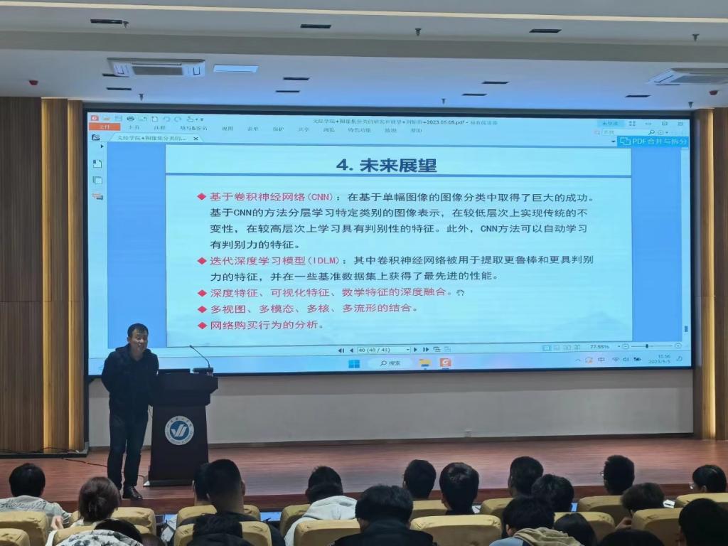 刘教授就图像处理的整体框架、图像表示的三种方法、性质以及图像集的分类做了详细的解读,同时对未来的研究做了展望。报告过程中,刘教授儒雅的气度、严谨的论证、渊博的知识、风趣的语言都给全体师生留下了深刻的印象。