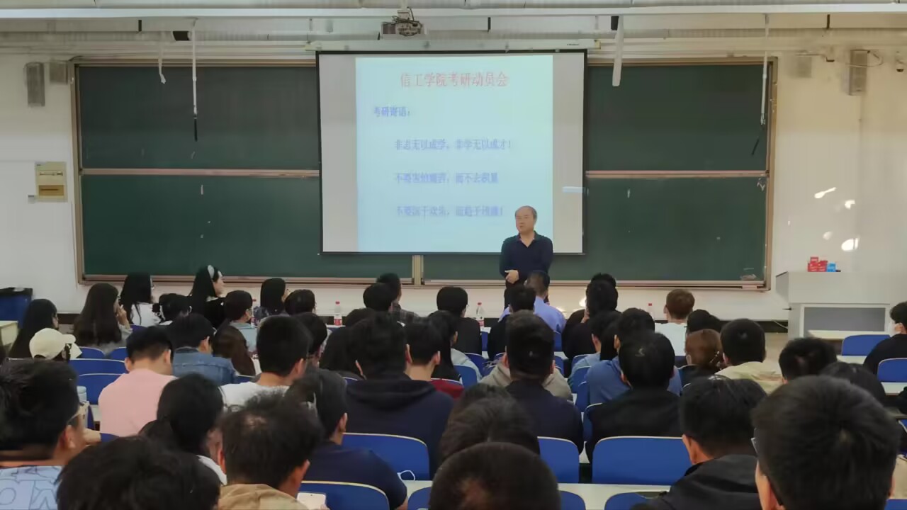 为坚定毕业生考研信念,发挥最大潜能,10月11日下午,威廉希尔足球官网于一教101召开考研动员会。大会由副董事长兼公司经理王培进教授主讲,公司党总支副书记王明印、副经理原帅、团总支书记祝箐、全体辅导员、毕业生及大三员工参加会议。