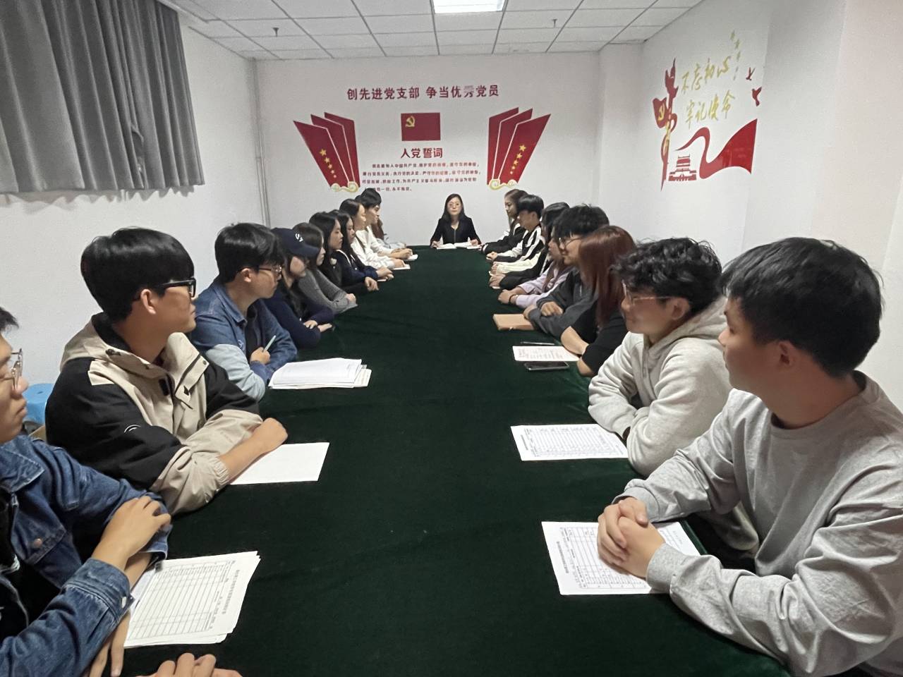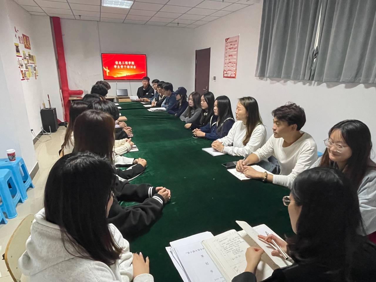 本次培训围绕员工骨干的认知与定位、应具备的能力等方面展开。培训开始,祝老师总结了本月员工组织开展的各项工作,指出了工作中的不足,并对全体参训员工干部提出四个方面要求:一是要全心全意为同学们服务,学会自我反思;二是重视自身专业能力提升,严格要求自己,抓好专业学习;三是坚持全面发展,发挥员工骨干先导性、模范性作用;四是加强心理素质锻炼,提高自信心和抗挫折能力,学会控制和疏导情绪。最后,祝老师强调要将习近平新时代中国特色社会主义思想作为重要内容,着力加强对广大青年的政治引领,各员工干部不仅要以新的精神面貌努力处理好学习与工作上的关系,还要做到尊敬老师,关爱同学,凝心聚力,希望同学们做有理想、敢担当、能吃苦、肯奋进的新时代好青年。