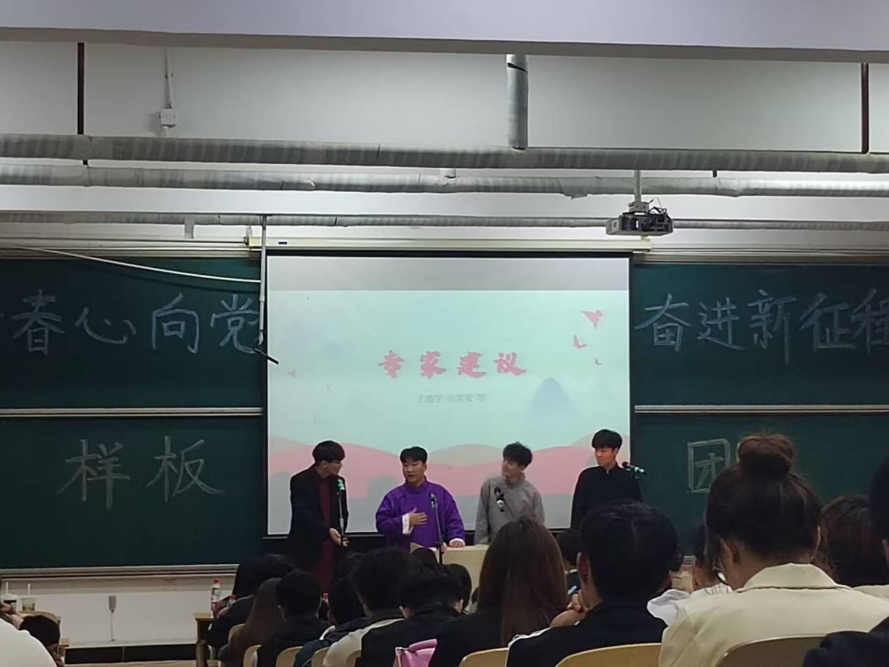 活动伊始,娓娓动听的歌曲《多远都要在一起》拉开本次活动的序幕。竹笛独奏《帕米尔的春天》激情悠扬的曲调描绘了帕米尔高原壮丽多姿的风光,领略了祖国的大好河山。紧接着,《青春心向党,奋斗新征程》和《青春向党》两个朗诵铿锵有力,表达了同学们对祖国的赞美,赢得了全场掌声,将现场气氛推向高潮。相声《专家建议》以及京剧《甘露寺》以传统与现代相结合的方式使同学们深刻领会到了传统文化的魅力。随后,歌曲《我的梦》、《没那么简单》以悠扬慷慨的腔调激励着同学们勇敢追寻自己的梦想。伴随着悠扬的歌声本次样板团日活动缓缓落下帷幕,正如歌名《我们都是追梦人》,希望公司学子勇敢追梦,一路向前。