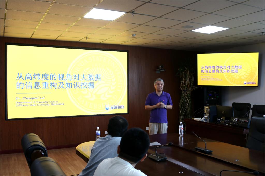 在信息爆炸时代,如何从海量的数据中提取有价值的信息,成为科研工作者和业界专家共同关注的焦点。6月27日下午,威廉希尔足球官网特邀加州州立大学贝克斯菲尔德分校计算机科学与工程系终身教授、知名大数据专家雷程炜博士,为广大师生带来了一场题为“从高纬度的视角对大数据的信息重构及知识挖掘的”学术讲座。本次讲座在综合楼六楼视频会议室举行,讲座由副董事长王培进教授持。
