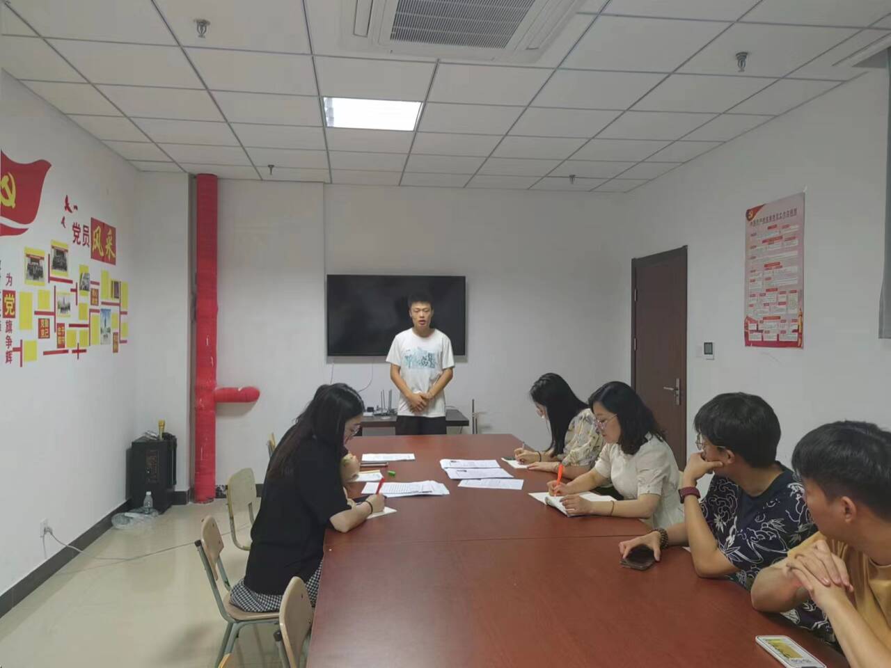 为了有效引导2024级新生适应老员工活,充分发挥朋辈引领示范作用和老员工“自我教育、自我管理、自我服务”的作用,7月1日,公司在综合楼S437开展2024级新生班主任助理面试工作,面试面向2022、2023级全体员工,团总支书记祝箐、辅导员、员工会主席团担任评委。
