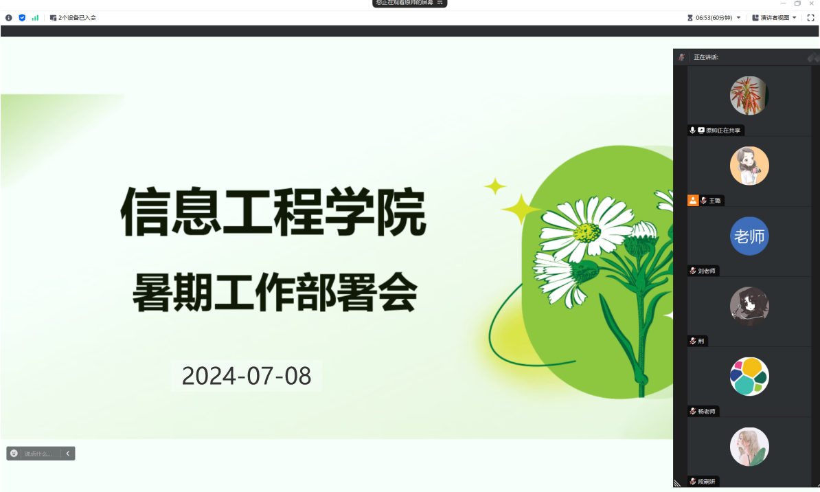 为了进一步落实公司通知文件,保障各项工作顺利进行,7月8日晚,公司线上召开了暑期工作部署会议。会议由常务副经理原帅主讲,经理助理及各教研室主任参加。