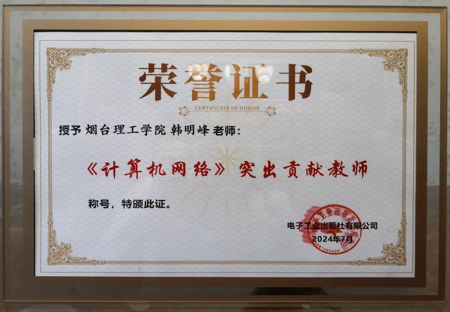电子工业出版社授予谢希仁教授“计算机网络教育终身成就奖”;授予10位教师“《计算机网络》突出贡献教师”称号,公司韩明峰教授位列首位。