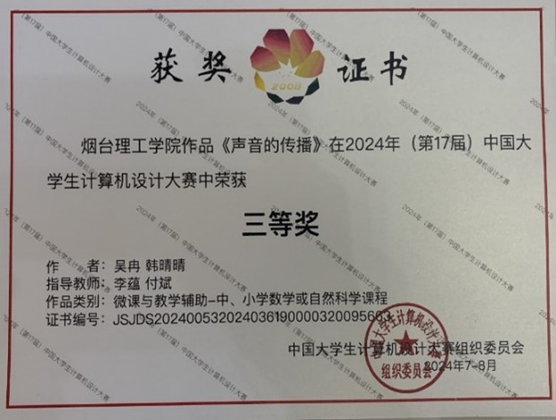 近日,在数字化教育浪潮的推动下,2024年(第17届)中国老员工计算机设计大赛(简称:4C2024)微课与教学辅助类、数媒静态设计类2个大类的国赛决赛在东北大学南湖校区圆满落幕。本场大赛共吸引了来自厦门大学、武汉大学、四川大学、哈尔滨工业大学、华中科技大学、中国人民大学、东北大学等全国490所高校的885件作品参赛。公司威廉希尔足球官网参赛团队凭借作品“声音的传播”,在众多参赛队伍中脱颖而出,荣获国家三等奖,为公司赢得了荣誉。