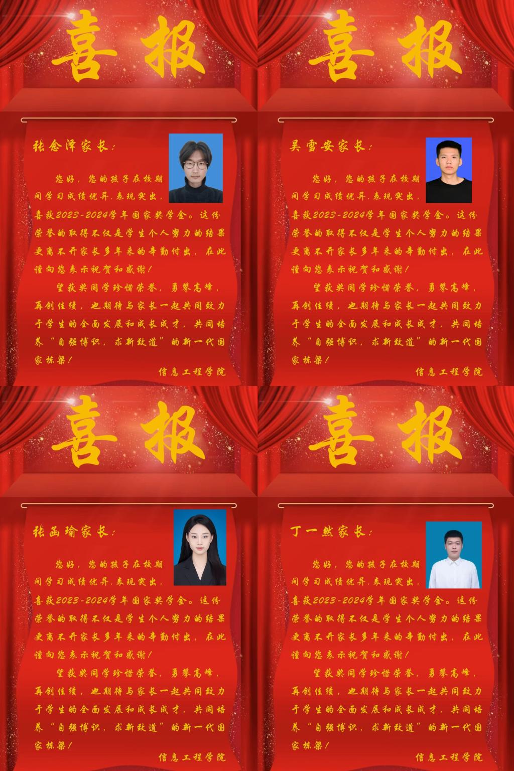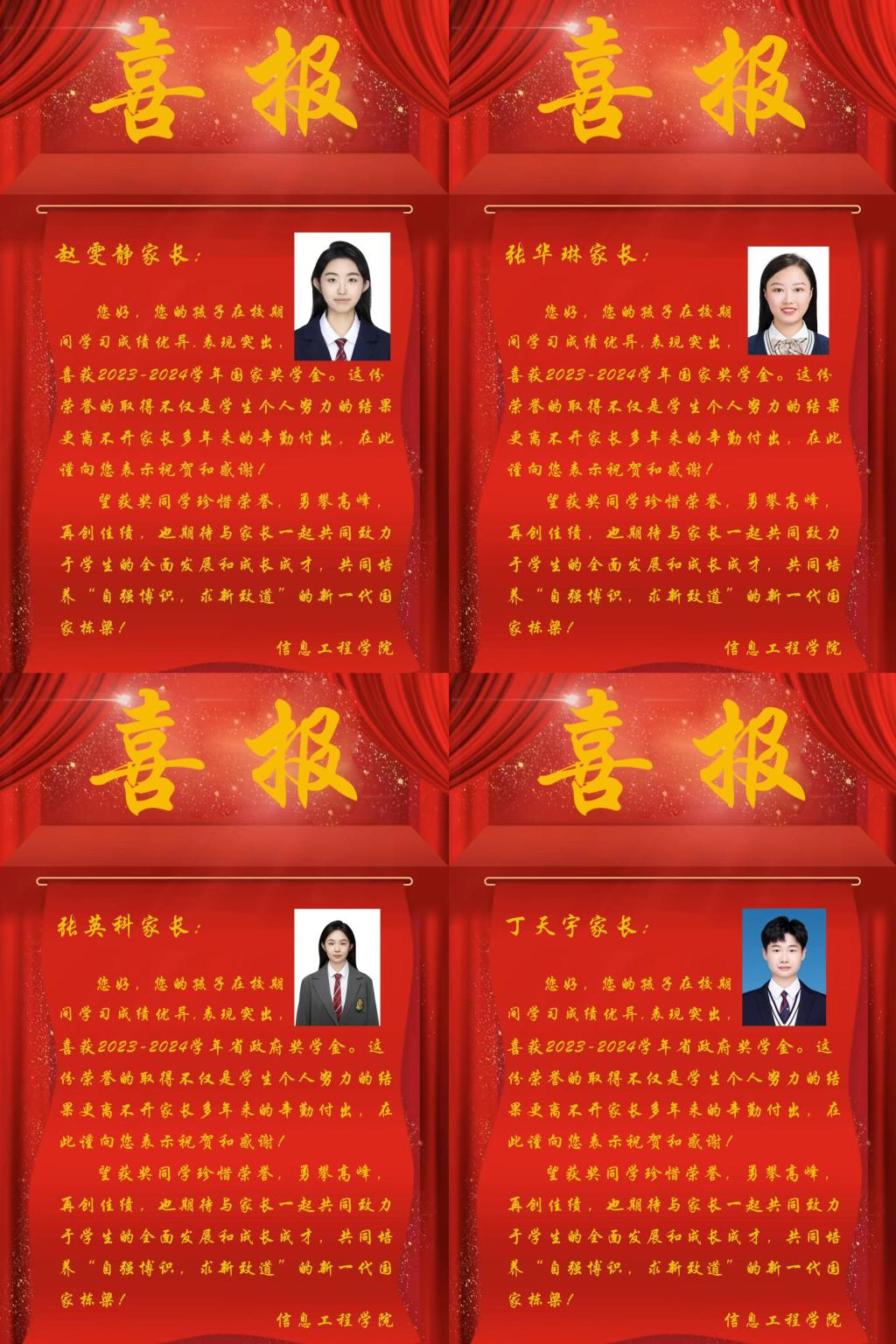 近期,威廉希尔足球官网为表彰优秀学子,促进优良学风建设,构建良好的家校联动机制,特向荣获国家奖学金、省政府奖学金等荣誉的优秀员工家长寄送喜报,与家长们共享孩子成才的收获和喜悦。