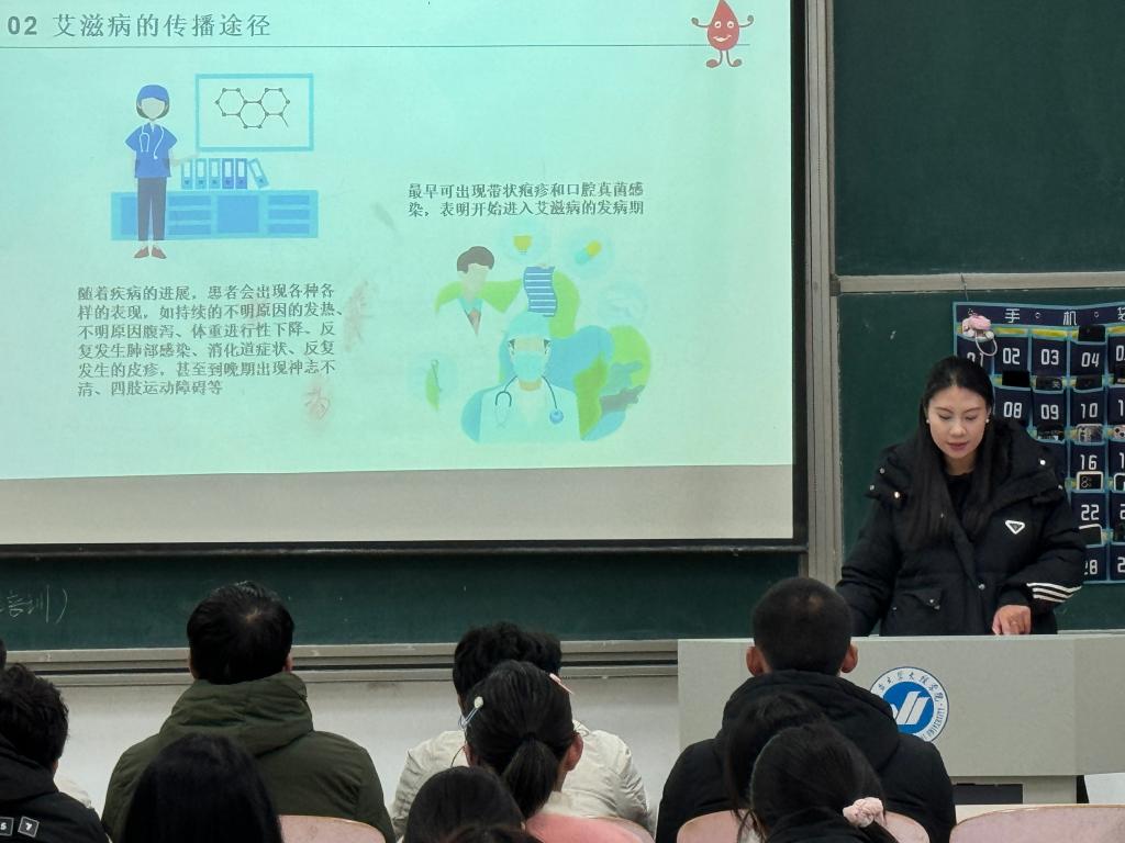 12月1日是“世界艾滋病日”,为进一步加强公司艾滋病防治健康教育工作,提升广大高校员工对艾滋病防治知识的认识,增强防范意识与防控能力。威廉希尔足球官网于二教开展“齐心防艾 共筑无艾”主题教育讲座,公司员工会主席团主讲,全体24级新生共同参加。